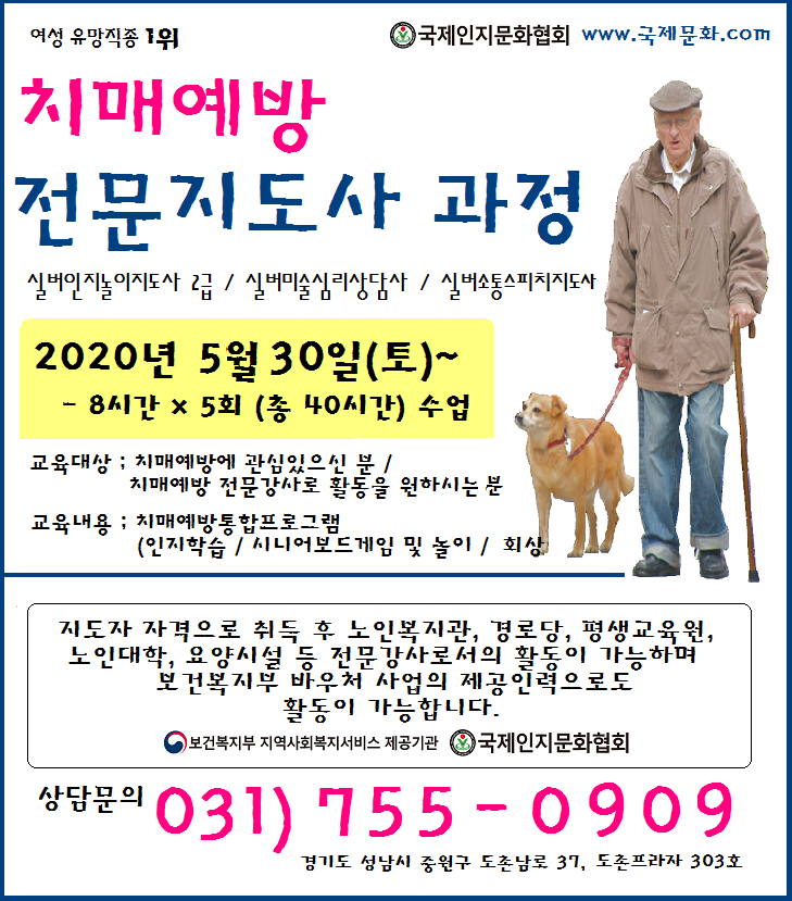 ♣성남본부♣ 치매예방 전문 지도사 자격증반을 모집합니다